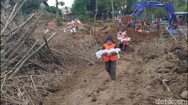 "Sudah dilakukan sejak empat hari ini. Total ada 26 orang dengan bantuan ekskavator kecil untuk melakukan pencarian sisa-sisa jenazah yang belum ketemu. Ini masih ketemu 200 lebih dan sudah dipindahkan menggunakan ambulans," tambah Mustofa.