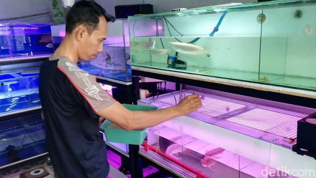 "Perawatan arwana mudah, yang penting airnya dirawat. Kuncinya air. Ikannya cukup kasih makan, hidup," jelasnya.