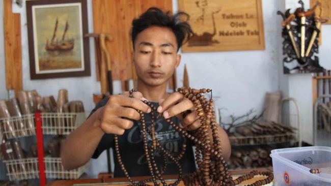 "Produk unggulan saya gaharu Kalimantan Rp 150-200 ribu per pcs. Karakternya hitam legam, wanginya alami dan menyengat. Tasbih paling biasa warnanya cokelat muda," tandasnya.