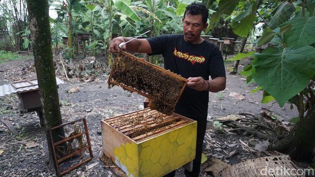 "Saya budi daya lebah apis mellifera ini sejak tiga tahun lalu. Karena lebah jenis ini lebih besar, madu yang dihasilkan juga 3 kali lipat lebih banyak," kata Irwan saat berbincang dengan detikJatim di rumahnya, Dusun Kemlagi Utara, Desa Kemlagi, Kamis (27/10/2022).