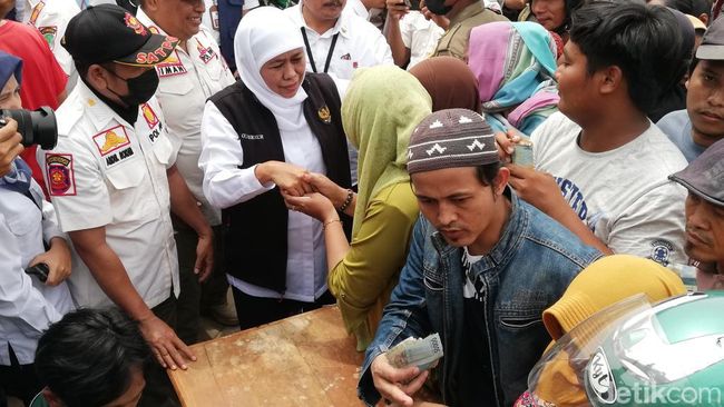 Saat warga antre, Gubernur Jatim Khofifah Indar Parawansa tiba di lokasi untuk meninjau distribusi. Warga berebut menyalami gubernur sembari menyampaikan keluh-kesah saat harga beras naik.