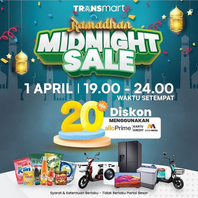 92 Gerai Transmart se-Indonesia akan menggelar Ramadhan Midnight Sale. Termasuk gerai Transmart yang ada di Surabaya, mulai Transmart Rungkut, Transmart Ngagel, Transmart Trans Icon Mall, hingga Transmart Dukuh Kupang. Banjir diskon berlaku 1 April 2023, mulai pukul 19.00-24.00 WIB.