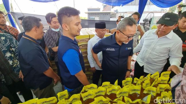 Selain meninjau, Zulhas sapaan akrabnya, juga memborong Minyakita dan gula. Kemudian, hasil pembeliannya ini dibagikan secara gratis ke warga setempat.