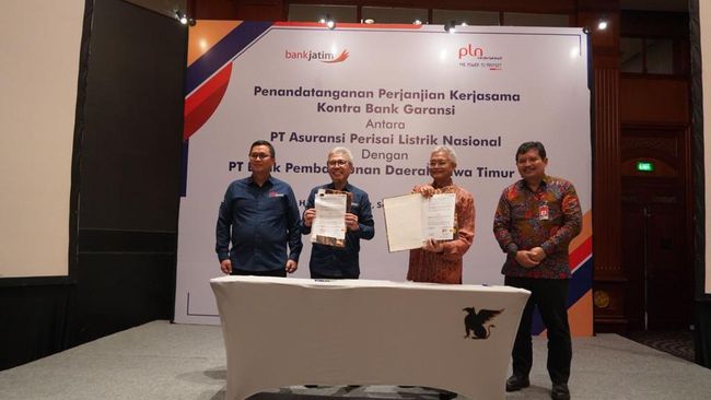 PT Bank Pembangunan Daerah Jawa Timur Tbk atau Bank Jatim melakukan penandatanganan perjanjian kerja sama terkait kontra bank garansi dengan PT Asuransi Perisai Listrik Nasional (PLN Insurance).