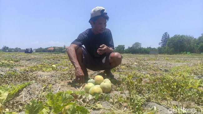 "Karena setiap hari panasnya sangat menyengat, menyebabkan buah melon dan semangka kualitasnya tidak maksimal," kata Hardi kepada detikJatim di ladang melonnya, Jumat (20/10/2023).