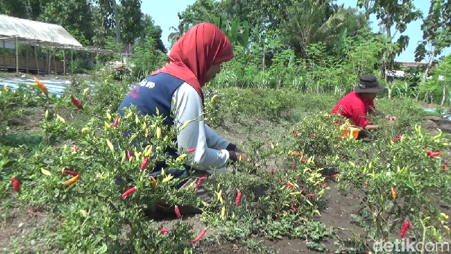 Dengan dibantu 2 orang pekerja, ia memanen cabai rawit di sawah seluas 200 meter persegi miliknya. Dalam sekali panen, ia bisa mendapatkan satu kuintal cabai rawit.