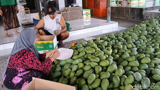 Ada sekitar 3 ton mangga yang siap dijual di rumahnya. Saat detikJatim ke rumahnya, Ilham dan para karyawannya sedang sibuk mengepak mangga untuk segera dikirim.