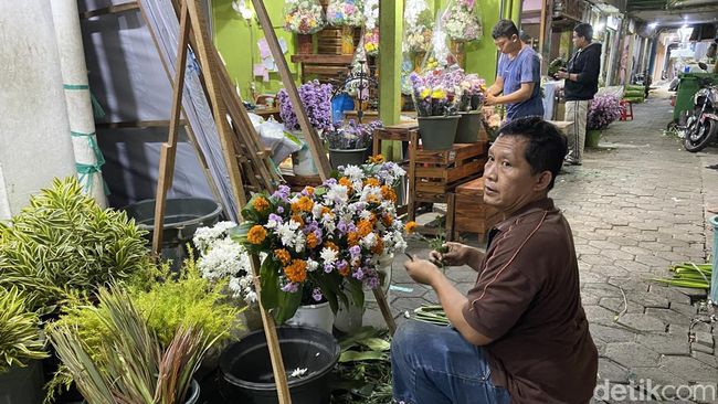 "Bisa sampai 100% ini kenaikannya. Per hari untuk karangan bunga saja kami bisa bikin sampai 30 buah. Belum lagi pesanan-pesanan bunga yang lain. Semuanya ramai," ujar Teguh saat dijumpai detikJatim di Pasar Bunga Kayoon, Jumat (22/12/2023).