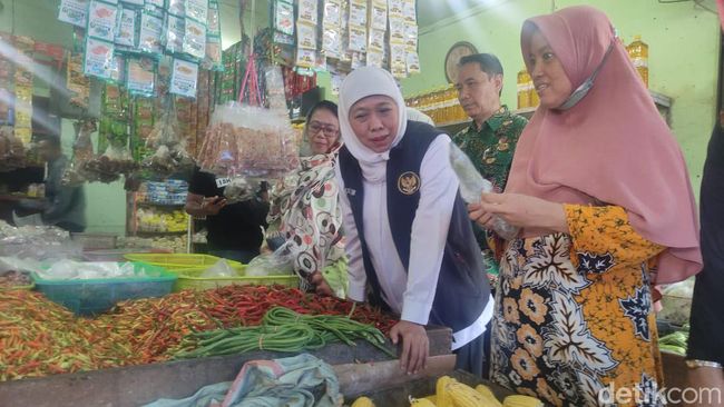Khofifah menjelaskan, terdapat beberapa bahan pokok yang mengalami penurunan harga. Seperti telur, daging ayam, dan cabai.