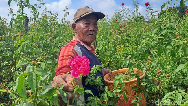Memetik bunga mawar menjadi rutinitas Suwarno alias Datuk (44) dan keluarganya. Hamparan lahan yang ditanami mawar mencapai 2 hektare, penuh dengan 40.000 pohon mawar kampung. Saat ini, setengahnya sudah siap panen.