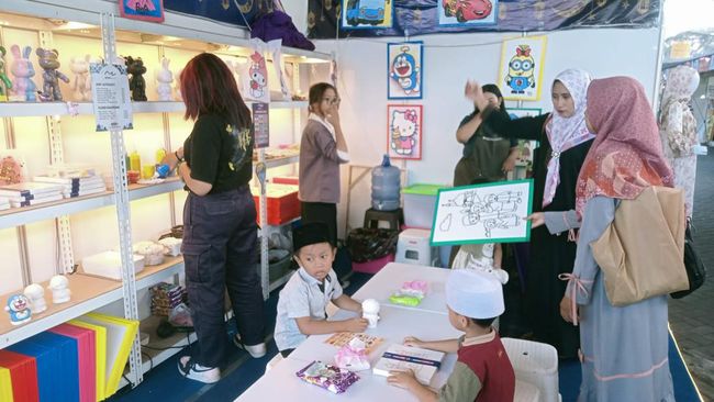 Keseruan ngabuburit kakak-beradik menggambar ini terjadi di stan Aion Studio yang ikut meramaikan Festival Ramadan Pegadaian. Festival ini digelar di area parkir Masjid Al Akbar Surabaya (MAS).