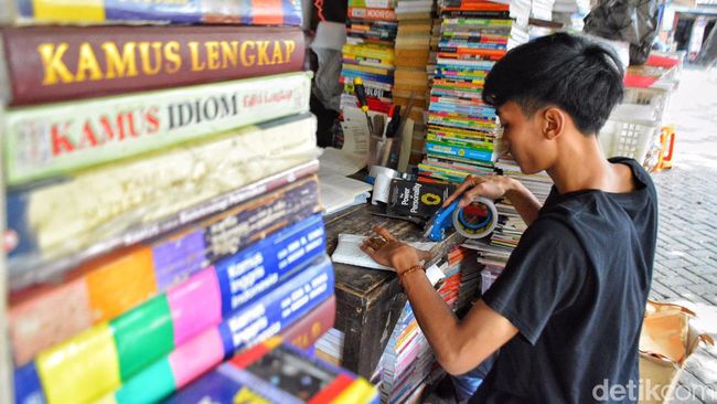"Kalau jualan di online shop sehari bisa laku 200-300 buku," terang Toni, penjual buku lainnya.