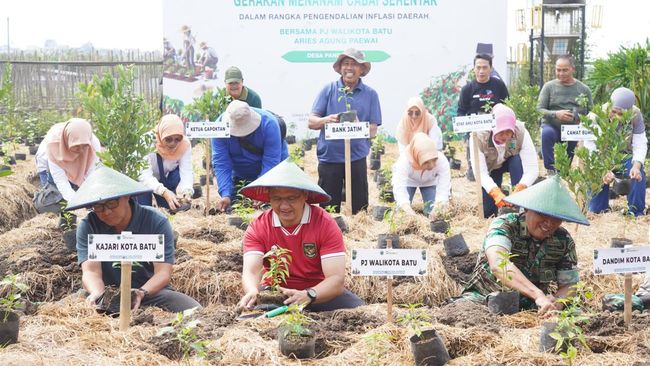Pj Wali Kota Batu Aries Agung Paewai kembali menggalakkan gerakan tanam cabai. Kegiatan ini merupakan salah satu upaya untuk pengendalian inflasi daerah.