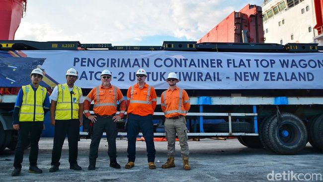 Pelepasan ekspor 96 gerbong barang datar ini dilakukan di Terminal Jamrud Nilam Mirah, Pelabuhan Tanjung Perak, Surabaya. Puluhan CFT Wagon itu dikirim dengan kapal kargo ke Selandia Baru hari ini.