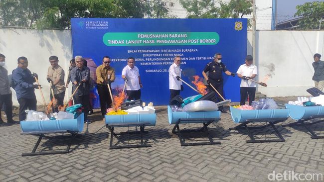 Menteri Perdagangan (Mendag) Zulkifli Hasan memimpin langsung pemusnahan produk ilegal itu di kawasan pergudangan Jalan Jabon, Desa Tambak Sawah, Kecamatan Waru, Sidoarjo pada Kamis (25/7/2024). Menurut Zulkifli Hasan, produk ilegal merugikan pendapatan negara dari sisi industri.