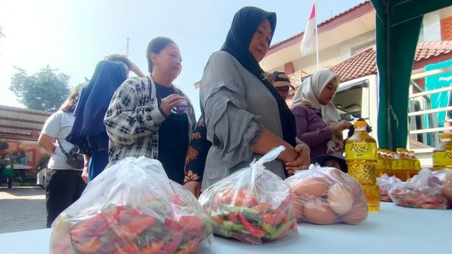 Seperti pagi tadi, operasi pasar digelar di halaman kantor Kelurahan Jagalan, Kranggan, Kota Mojokerto. Diskopukmperindag Kota Mojokerto menyediakan cabai rawit seharga Rp 52.000/Kg, telur ayam Rp 22.000/Kg, minyak goreng Rp 14.000/botol.