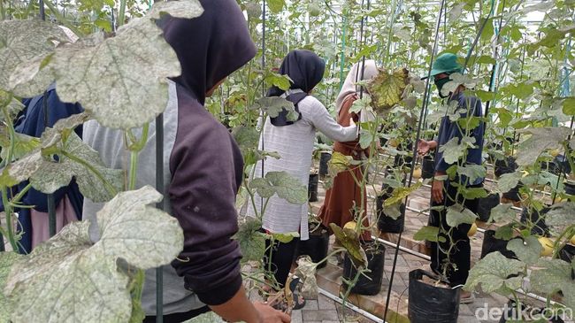 Lahan tidur di Kecamatan Pakisaji, Kabupaten Malang dimanfaatkan untuk menanam buah melon. Kini kebun melon tersebut bisa menghasilkan 5 kuintal dalam sekali panen.