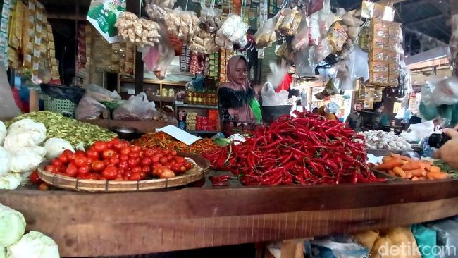 Pantauan detikJatim di Pasar Besar Kota Pasuruan, cabai besar di semua lapak penjual sayur mayur menggunung. Cabai-cabai itu terlihat segar dan berkualitas baik.