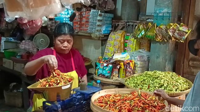Pantauan detikJatim di pasar tradisional Kota Bojonegoro, harga cabai rawit tembus Rp 115 ribu per kilogram. Padahal, sebelum Ramadan harga cabai berkisar Rp 80 ribu per kilogram.
