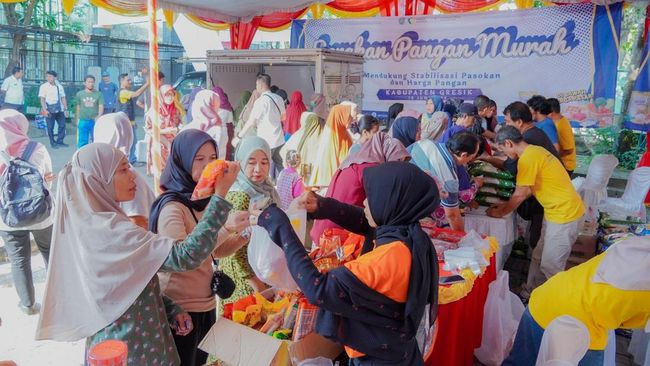 "Gerakan Pangan Murah bertujuan meningkatkan daya beli masyarakat dan mengurangi tekanan biaya hidup. Alhamdulillah, inflasi di Gresik tetap terkendali pada angka 0,6 persen year-on-year, menempatkan Gresik di posisi kedua se-Jawa Timur dalam pengendalian inflasi," ungkap Sekretaris Daerah (Sekda) Gresik Achmad Washil Miftahul Rachman yang membuka acara tersebut.