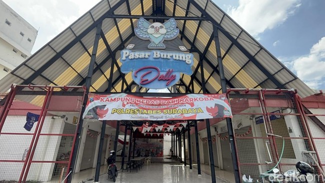 Bangunan pasar burung di kawasan eks lokalisasi Dolly Surabaya saat ini mangkrak. Menurut warga, bangunan itu tak lagi digunakan untuk UMKM sebab mereka tak mampu bertahan.