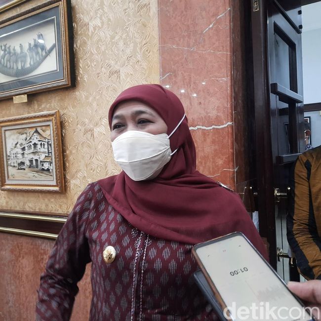"Ya rodok kaget sih sakjane (ya agak kaget sih sebenarnya)," kata Khofifah kepada wartawan di Balai Kota Surabaya, Jumat (8/4/2022).