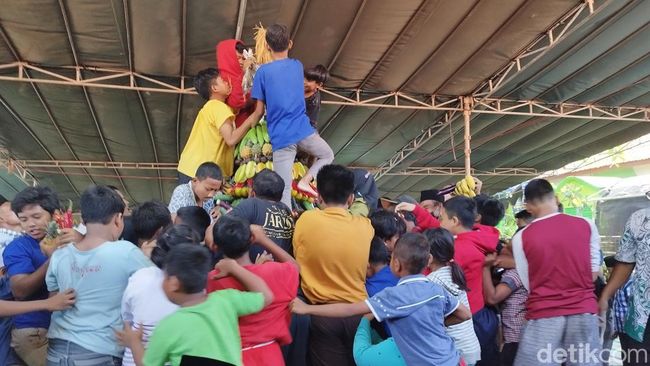 Dari pantauan detikJatim di lokasi acara, ratusan warga yang terdiri dari anak-anak, remaja, hingga ibu-ibu berebut gunungan. Meski yang didapatkan hanya buah dan sayur, warga sangat antusias untuk berebut mendapatkan hasil bumi tersebut.