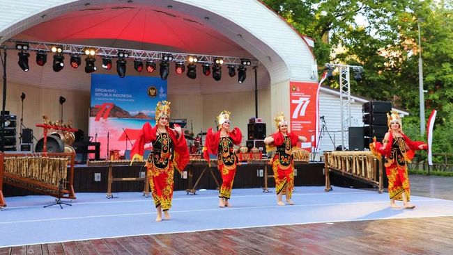 Penampilan tari gandrung tersebut merupakan rangkaian Indonesian Cultural & Musical Performance, dari KBRI Moskow, yang digelar di Summer Stage of The Hermitage Garden, Moskow, dalam rangka memperingati HUT ke-77 RI, 17 Agustus.