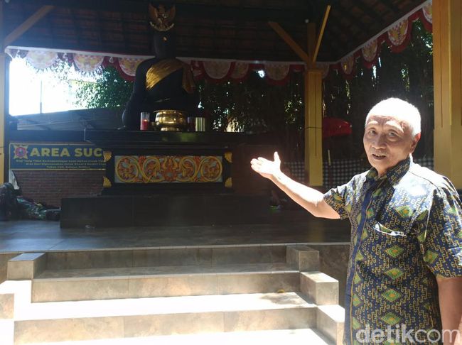 "Sampai saat ini, dinamakan Mbah Jogo Dolog. Patung itu ditempatkan di gundukan dengan pondasi bebatuan," ujarnya.