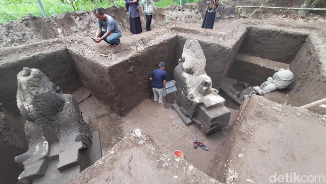 Ketua tim peneliti ekskavasi BRIN Sukawati Susetyo mengatakan tiga arca berukuran besar itu adalah Makara dan Dwarapala. Arca-arca tersebut biasanya terletak di depan bagian pintu masuk sebuah candi yang digunakan untuk beribadah.