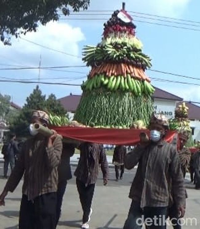 "Jumlah gunungan hasil bumi ada 4 yang berasal dari kelompok tani dari beberapa kecamatan. Gunungannya berupa sayuran dan buah buahan," ujarnya di lokasi.