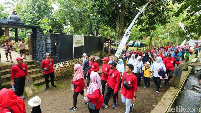 Mereka menelusuri jalur sejauh 5 km dari Kantor Desa Bunder dan berujung di Situs Petilasan Prabu Tawangalun di Desa Gombolirang, Kecamatan Kabat, Sabtu (24/12/2022).