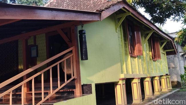 Dindingnya dari anyaman bambu, masih terlihat kokoh dengan cat warna hijau muda. Papan kayu sebagai lantai bangunan, juga masih terjaga kondisinya.
