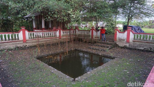 Nampak gelembung udara terus keluar dari dalam kolam. Entah karena gas atau semburan mata air di dasarnya. Di sudut tenggara pagar kolam ini terdapat pohon beringin besar yang di sisi timurnya terdapat cawan bekas menancapkan dupa. Sebelah timurnya lagi terdapat pendapa kecil untuk para peziarah.