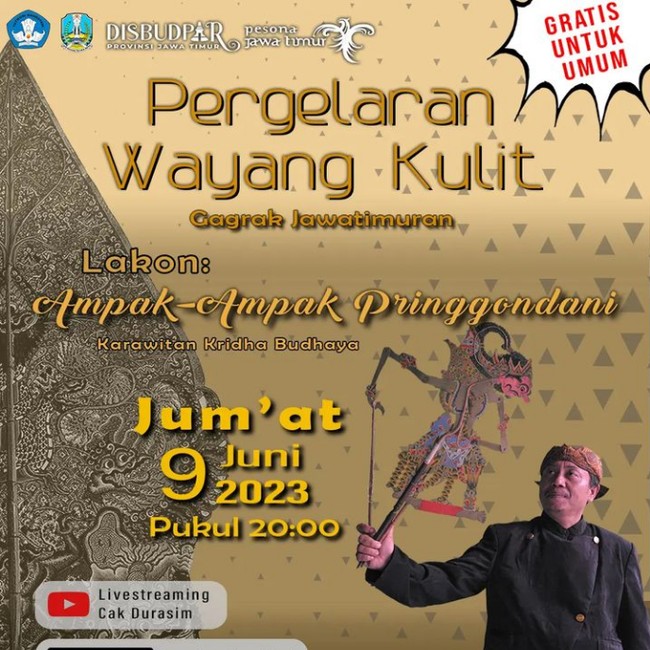 Pergelaran wayang kulit tersebut akan berlangsung di UPT Taman Budaya Jawa Timur, Surabaya. Namanya Pergelaran Wayang Kulit Gagrag Jawa Timuran.