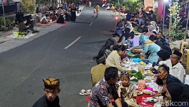 "Tadi sore barong ubes-ubes blarak diarak di jalan desa, baru tumpeng makan bersama-sama," Terang Arifin.