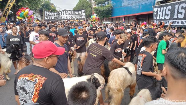 Seperti yang terlihat di Kampung Temenggungan, Jalan Gatot Subroto. Warga ramai-ramai menggunakan kaus berwarna hitam bertuliskan "Euforia Nato" berjalan bersama-sama sambil mengarak hewan kurban.