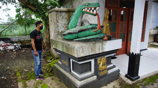 "Patung ular mengerami telur ayam menjadi salah satu objek yang menggambarkan cerita rakyat di situs ini," ujar Juru Kunci Kubur Jago Khoiri (48) kepada detikJatim.