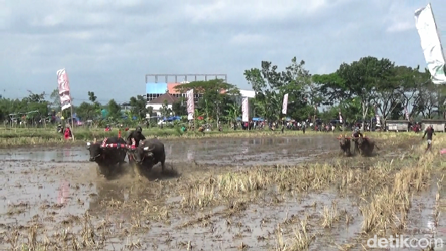 Kerbau-kerbau yang biasanya digunakan untuk membajak sawah ini akan diadu kecepatannya. Arenanya yakni sawah berlumpur sepanjang 500 meter.