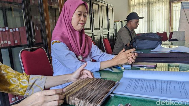 "Untuk yang dua berbentuk rangkaian ini kami temukan tahun 2019 di salah satu ruangan di pendapa kabupaten. Saat itu Pak Bupati memerintahkan untuk membersihkan ruangan, manuskrip ini berada di pojokan," kata Silan, Rabu (11/10/2023).