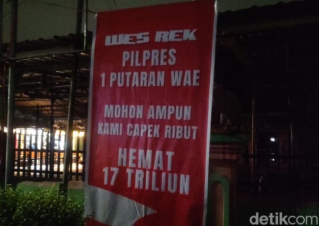 Sejumlah spanduk bertuliskan 'Pilpres Satu Putaran Wae. Mohon Ampun Kami Capek Ribut. Hemat 17 Triliun' bermunculan di Kota Surabaya. Sejumlah titik spanduk berada di wilayah Sukomanunggal, Tandes, hingga Dukuh Pakis.