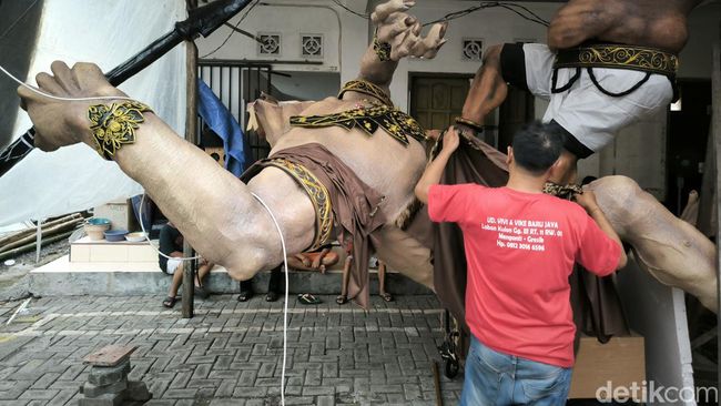 "Kita ambil tema pertarungan raja baik yang mengalahkan raja buruk. Ini kebajikan mengalahkan angkara murka. Tahun ini kita buat dua patung yang menggambarkan itu," kata Rio kepada detikJatim di Pura Jagad Dumadi Gresik, Sabtu (9/3/2023).