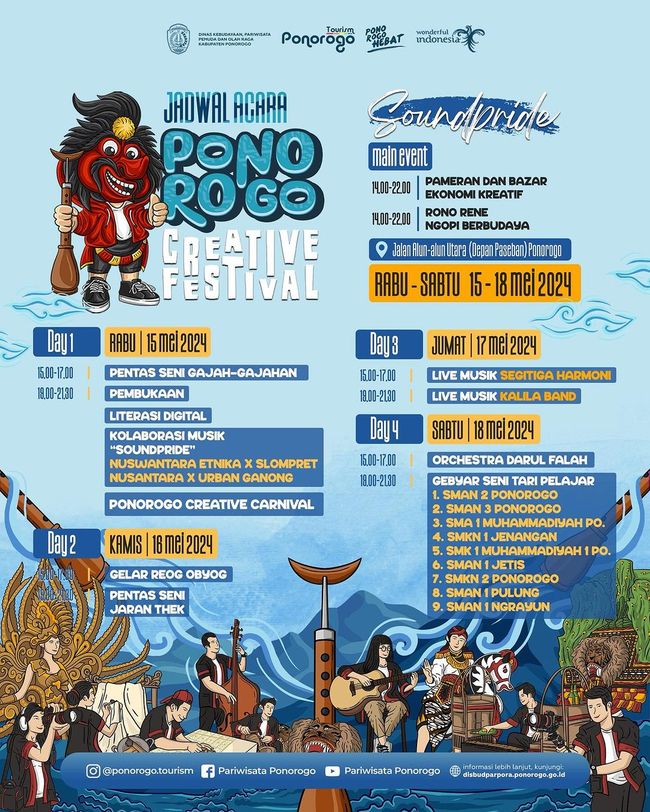 Warga Ponorogo yang tertarik menghadiri PCF 2024 dapat mengakses informasi selengkapnya melalui laman resmi disbudparpora.ponorogo.go.id atau akun Instagram @ponorogo.tourism. Yuk, segera ajak keluarga dan teman untuk datang ke PCF 2024!