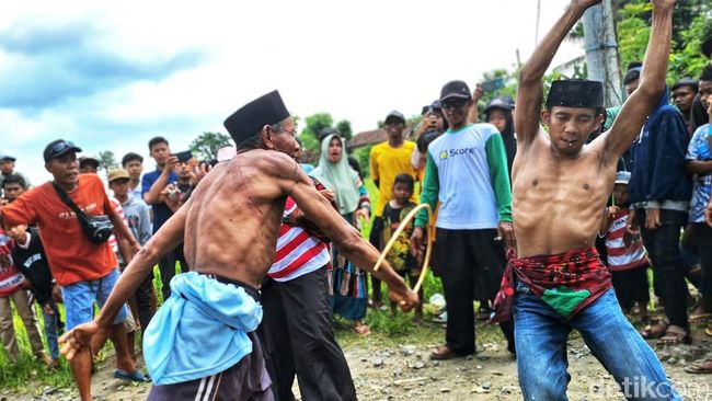 Tradisi yang berlangsung turun-temurun ini dipimpin seorang wasit yang juga menjadi penilai capaian sasaran yang dilakukan terhadap lawan. Tak cuma itu saja.
