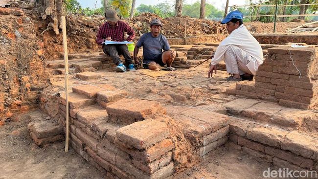 "Tapak gapura baru kami tampakkan separuh yang utara, struktur berlanjut ke selatan. Posisinya cenderung ke selatan, tidak lurus dengan tangga candi," terangnya kepada detikJatim di lokasi ekskavasi, Senin (29/7/2024).
