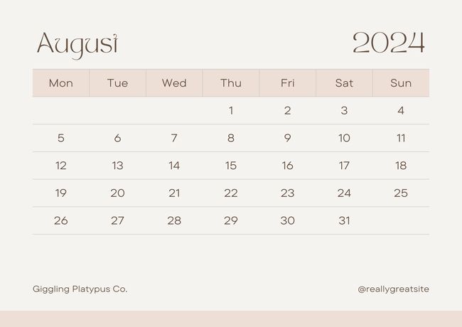 Terdapat 31 hari dan lima minggu di bulan Agustus 2024. Namun, dalam kalender Jawa bulan Agustus 2024, terdapat dua bulan Jawa yaitu Suro dan Sapar.