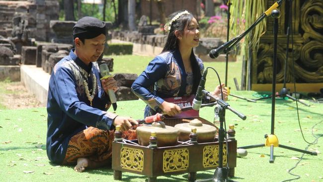 Tabuhan gendang dan sejumlah alat musik lain terdengar semarak dari Candi Tegowangi, di Desa Tegowangi, Kecamatan Plemahan, Kediri.