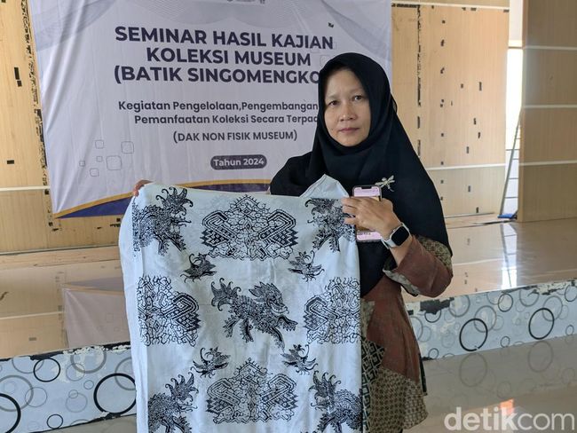 "Batik Singo Mengkok ini menjadi salah satu koleksi yang ada di Museum Sunan Drajat sejak 2003 dan merupakan hibah dari Pak Sukandar di Bangkalan yang merupakan anak angkat dari Mbah Cokrokusumo yang masih anak turun Sunan Drajat," kata Arkeolog dan Direktur Kailasa Kreasi Nusantara, Camella Sukma Dara saat Seminar Hasil Kajian Koleksi Museum" yang digelar Dinas Pariwisata dan Kebudayaan (Disparbud) Lamongan, Selasa (3/12/2024).