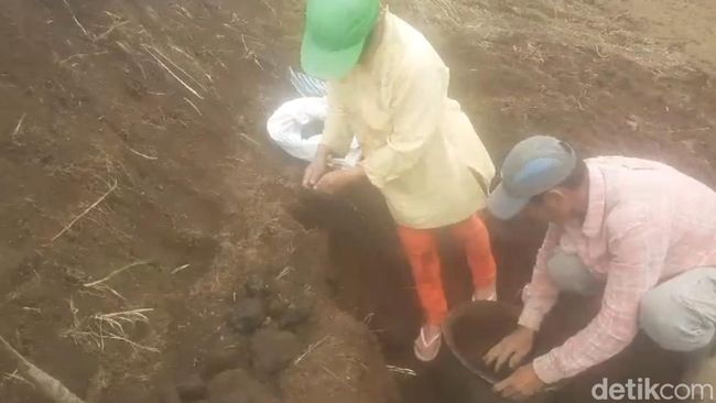 Kariyo (47), petani di Dusun Slorok, Desa Andonosari, Kecamatan Tutur, Kabupaten Pasuruan, menemukan ribuan koin kuno dengan berat total 1 kuintal di ladang.
