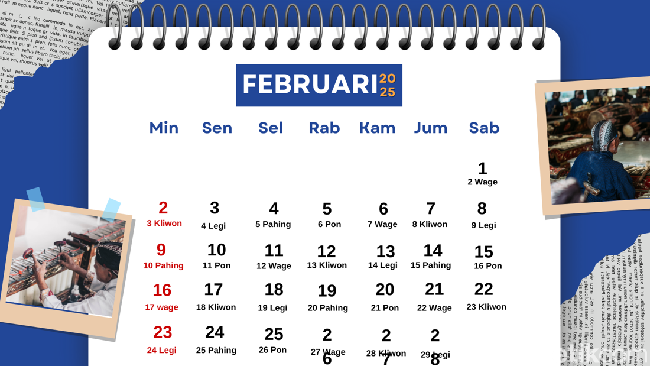 Kalender Jawa hari ini untuk bulan Februari 2025. Yuk, simak kalender Jawa hari ini, Sabtu 22 Februari 2025 selengkapnya dengan pasaran, weton, dan wataknya.